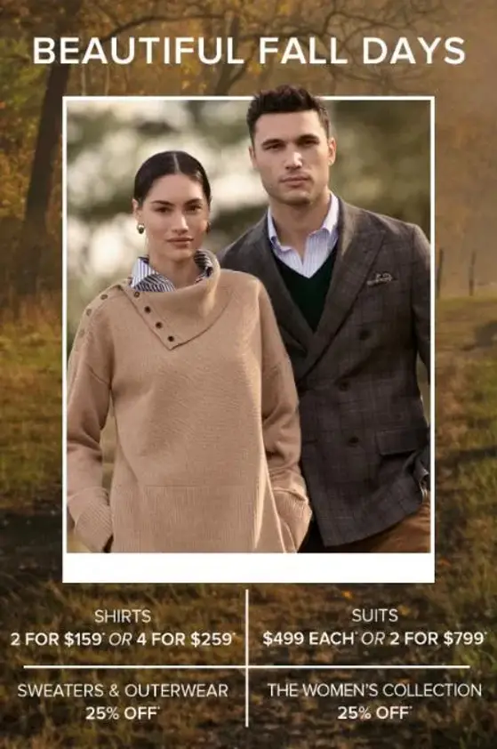 Offer is valid through 10/28/2025 on select merchandise in U.S. Brooks Brothers Factory. May not be combined with certain other discounts or offers. Discount may not be applied toward taxes or alterations. Not valid on previous purchases.